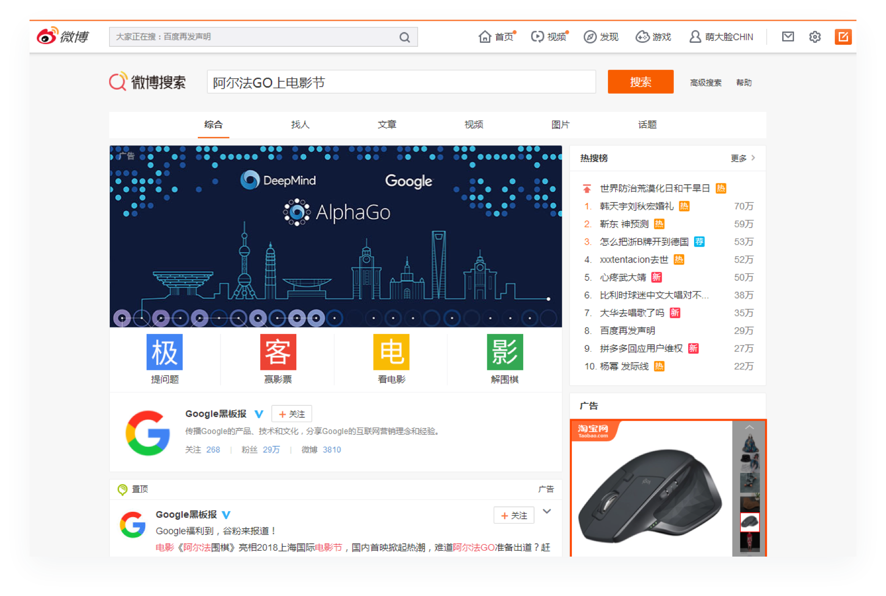 搜索页自动显示top热搜事件,第三位为营销位